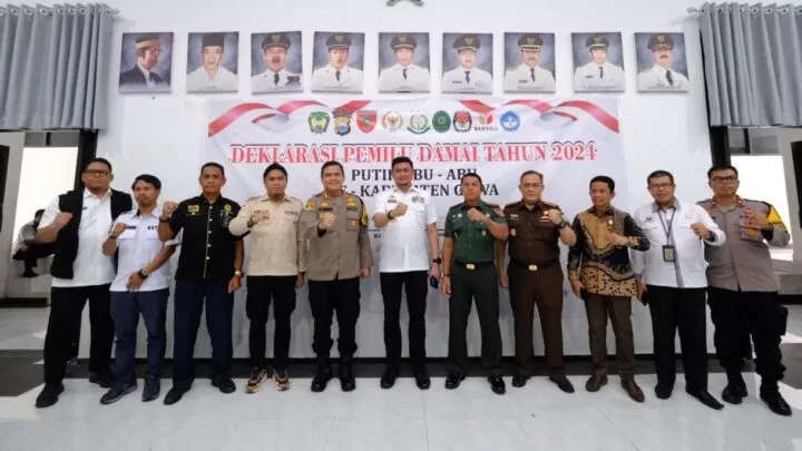 Terkini.id, Gowa - Jelang pelaksanaan Pemilu 2024, Polres Gowa melaksanakan dialog bersama siswa-siswi SMA, SMK, MA dan SLB se-Kabupaten Gowa dalam rangka Deklarasi Pemilu Damai Tahun 2024 "Putih Abu Abu", bertempat di Aula Karaeng Galesong Pemda Kabupaten Gowa, Rabu, 7 Februari 2024.